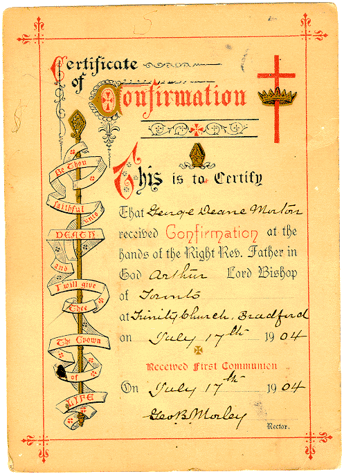 local Hotel, and received his confirmation at Trinity Church, Bradford,